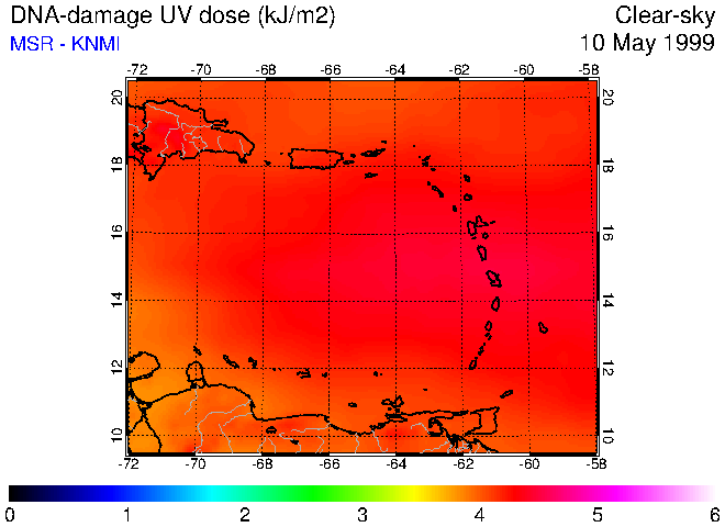 Clear-sky UV index:   erythemal