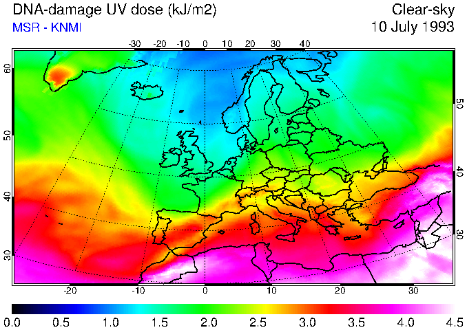 DNA-damage UV dose of 10 July 1993
