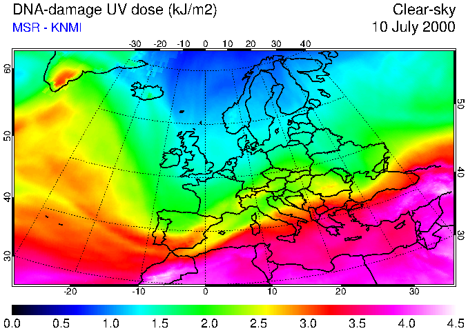 DNA-damage UV dose of 10 July 2000