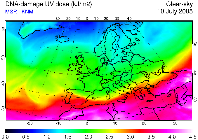 DNA-damage UV dose of 10 July 2005