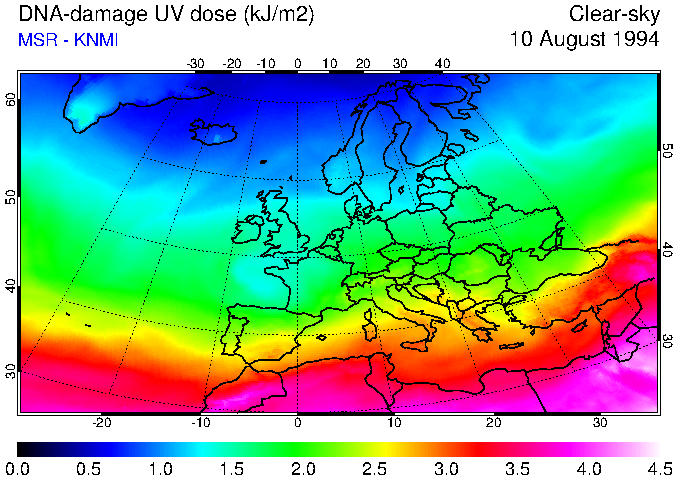 DNA-damage UV dose of 10 August 1994