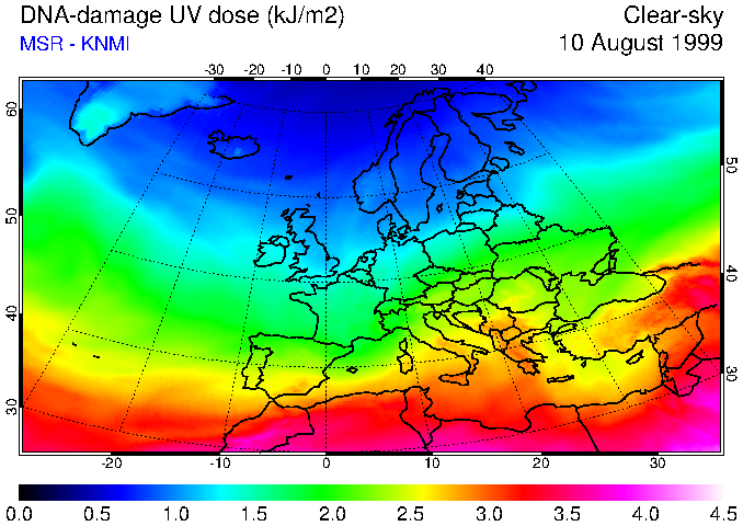 DNA-damage UV dose of 10 August 1999