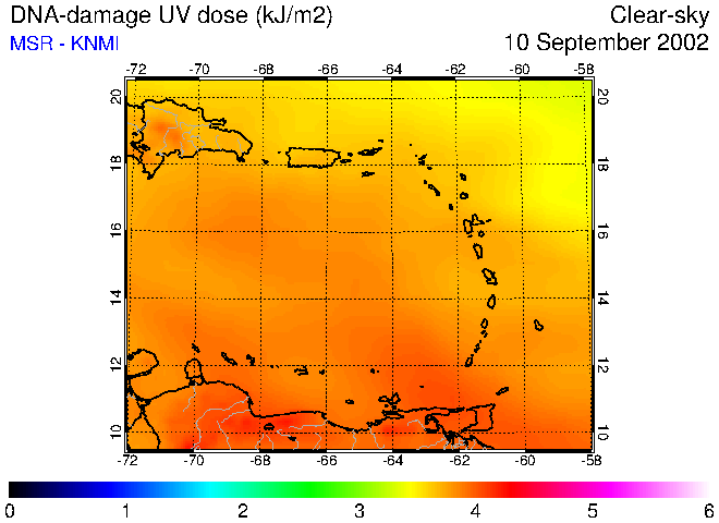 Clear-sky UV index:   erythemal