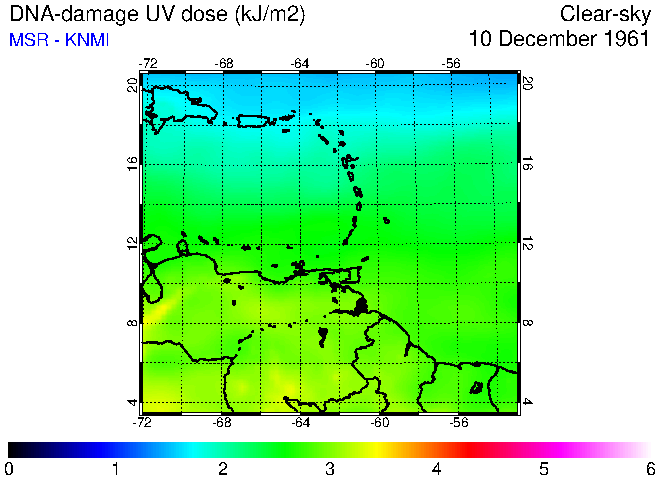 Clear-sky UV index:   erythemal