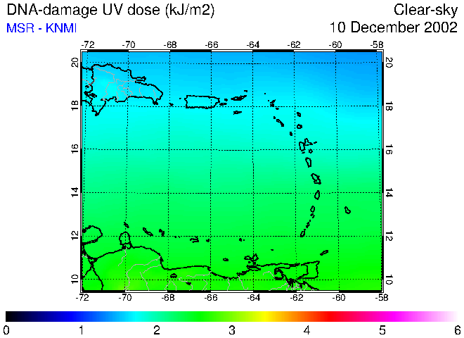 Clear-sky UV index:   erythemal