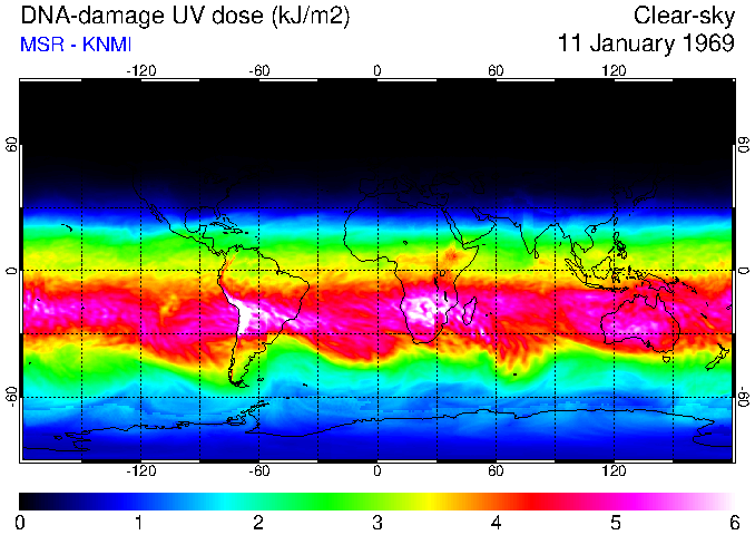 DNA-damage UV dose of 11 January 1969