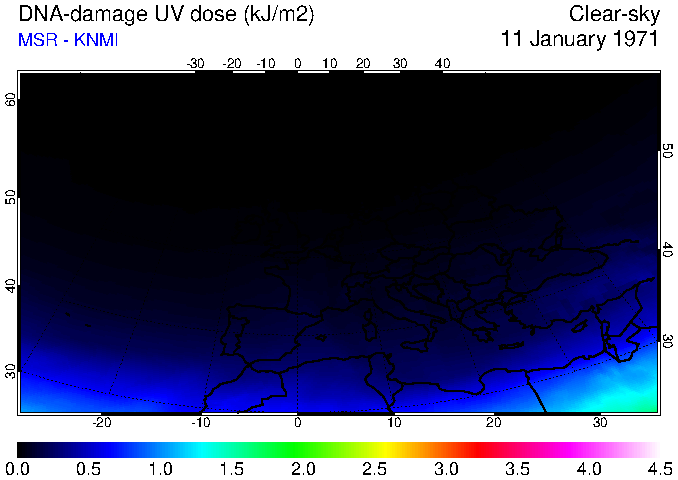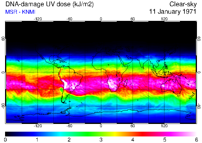 DNA-damage UV dose of 11 January 1971