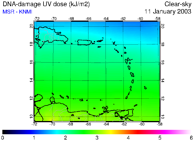 Clear-sky UV index:   erythemal