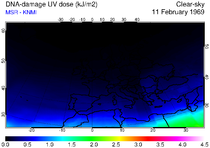 DNA-damage UV dose of 11 February 1969