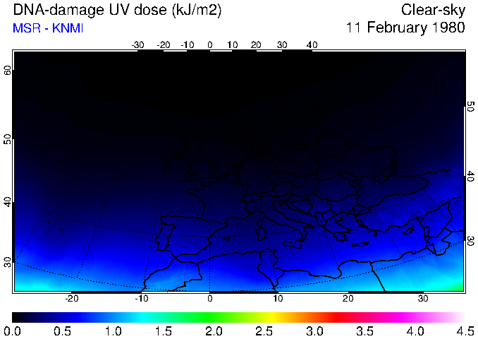 DNA-damage UV dose of 11 February 1980