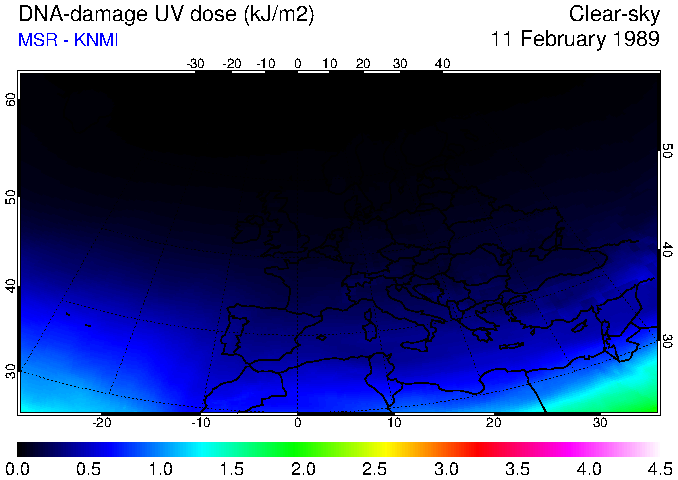 DNA-damage UV dose of 11 February 1989