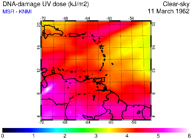 Clear-sky UV index:   erythemal