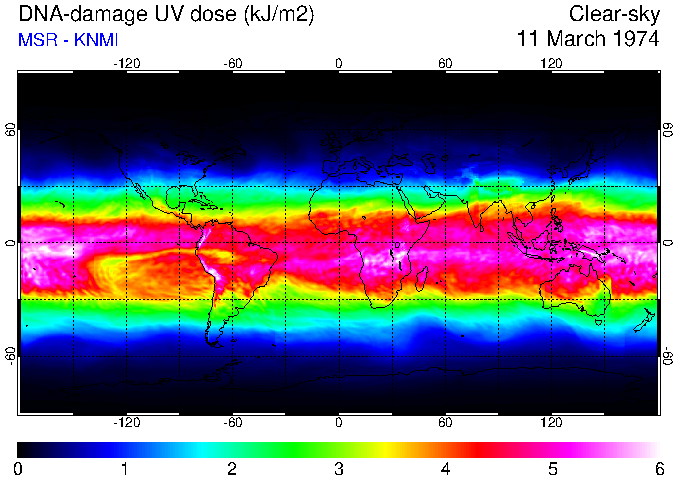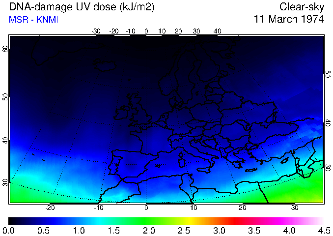 DNA-damage UV dose of 11 March 1974