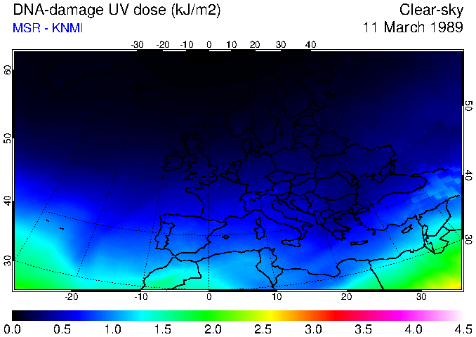 DNA-damage UV dose of 11 March 1989