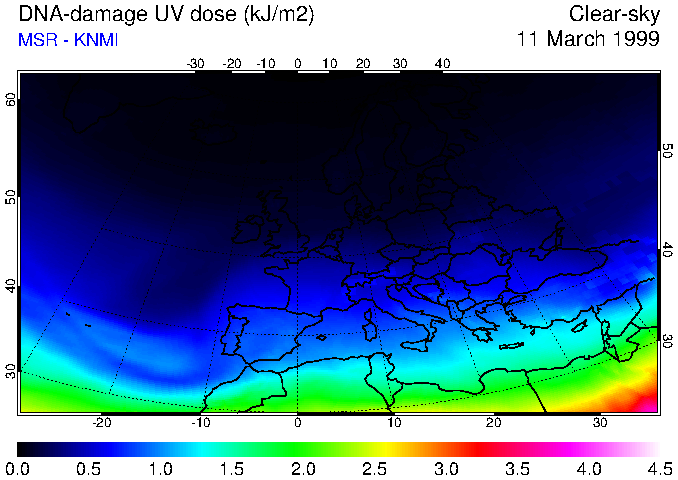 DNA-damage UV dose of 11 March 1999