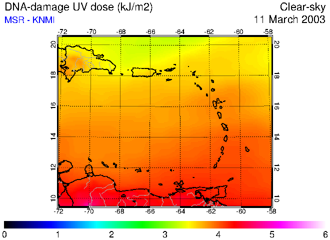 Clear-sky UV index:   erythemal