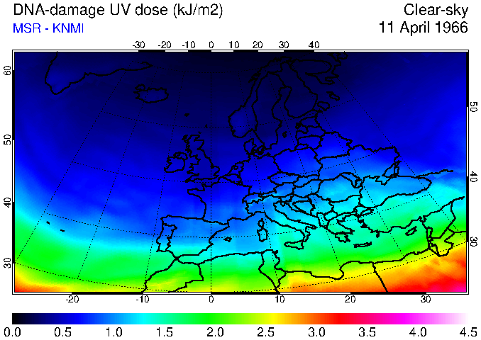 DNA-damage UV dose of 11 April 1966