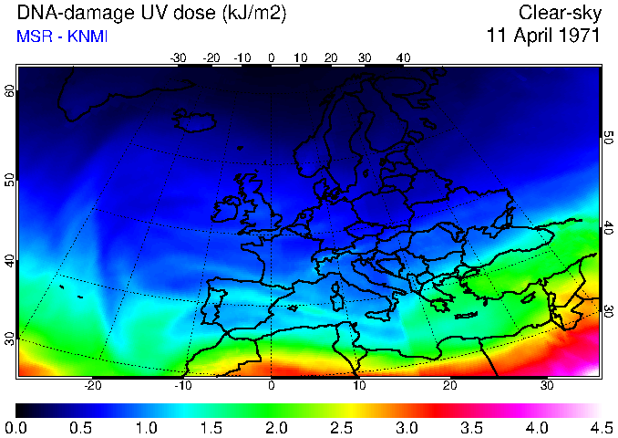 DNA-damage UV dose of 11 April 1971