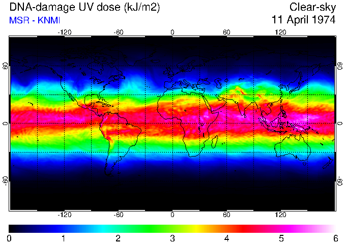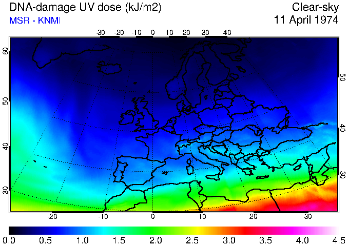 DNA-damage UV dose of 11 April 1974