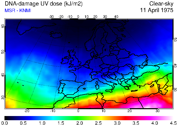DNA-damage UV dose of 11 April 1975