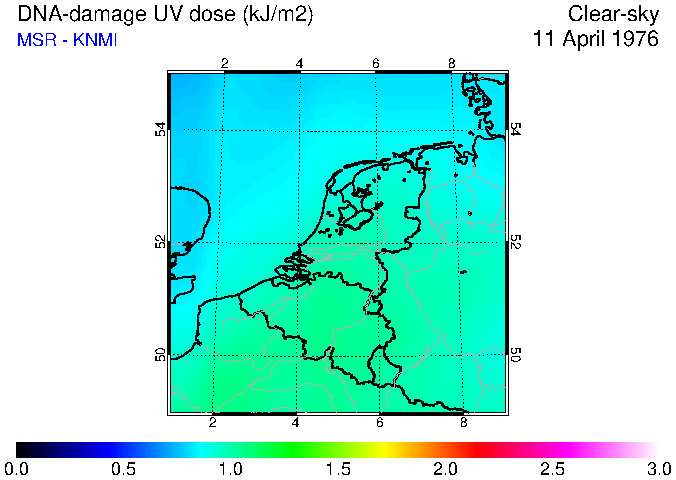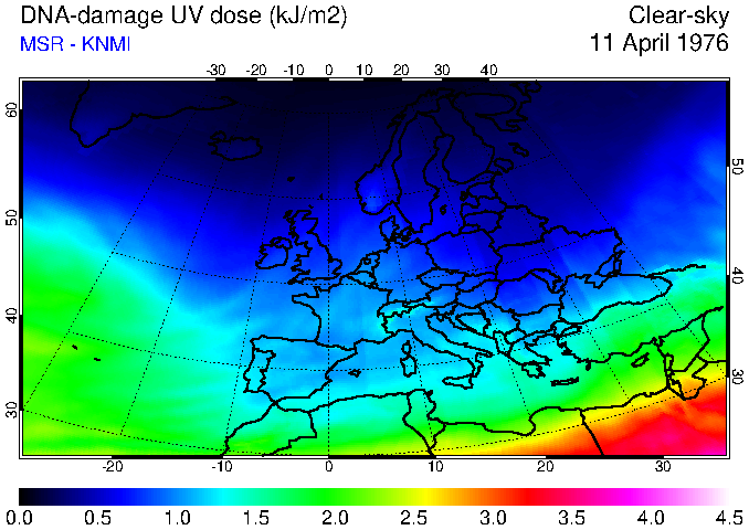 DNA-damage UV dose of 11 April 1976