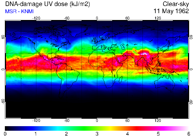Daily UV dose:   erythemal  |  vitamin-D  |  DNA-damage