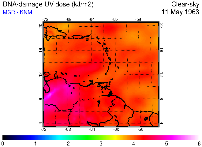 Clear-sky UV index:   erythemal