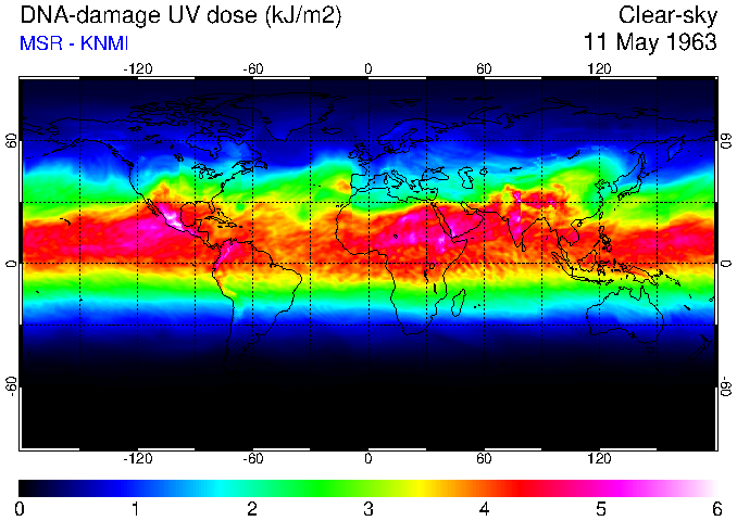 Daily UV dose:   erythemal  |  vitamin-D  |  DNA-damage