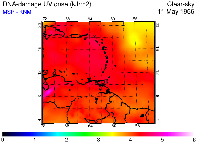 Clear-sky UV index:   erythemal