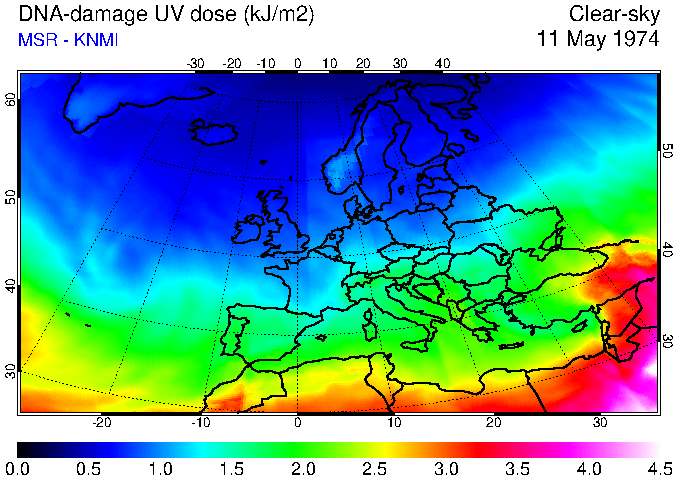 DNA-damage UV dose of 11 May 1974