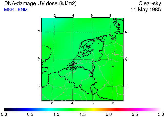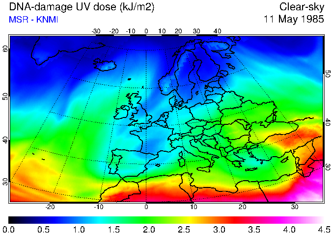 DNA-damage UV dose of 11 May 1985