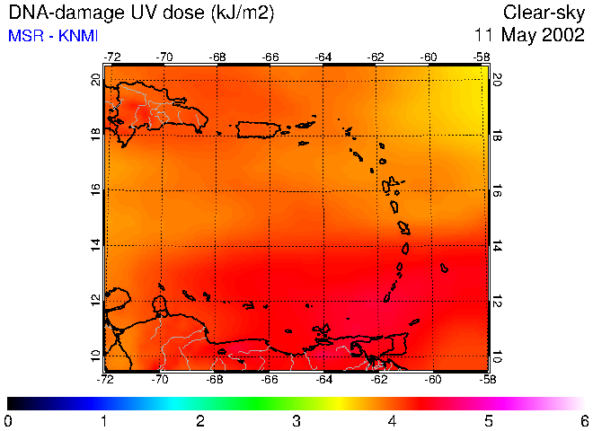 Clear-sky UV index:   erythemal