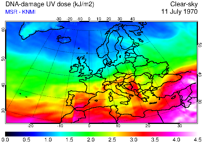 DNA-damage UV dose of 11 July 1970