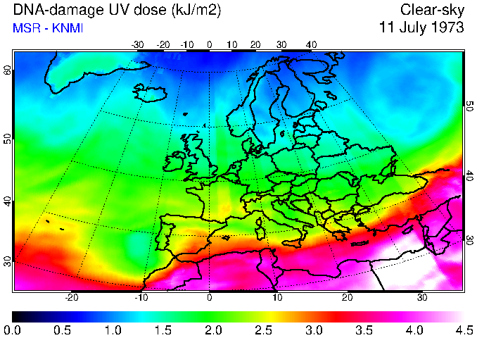 DNA-damage UV dose of 11 July 1973