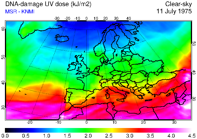 DNA-damage UV dose of 11 July 1975