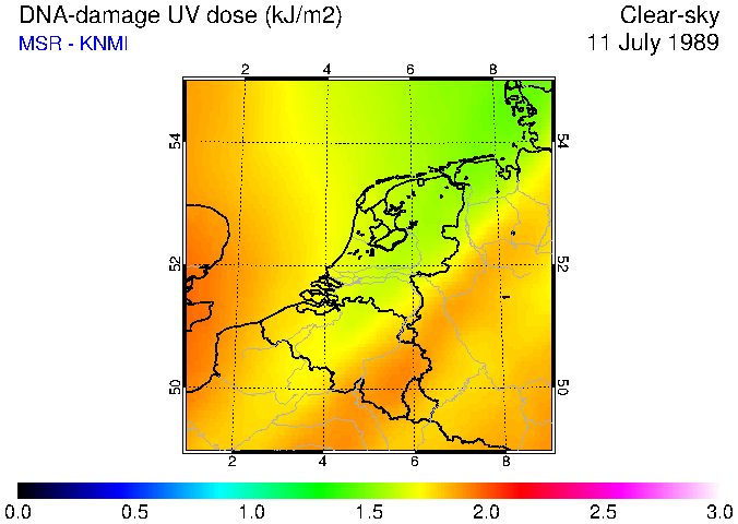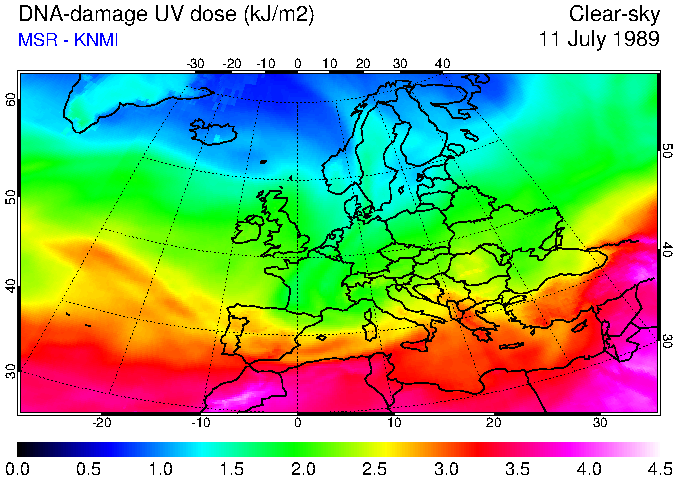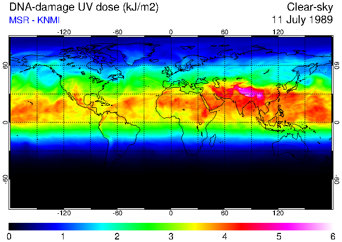 DNA-damage UV dose of 11 July 1989