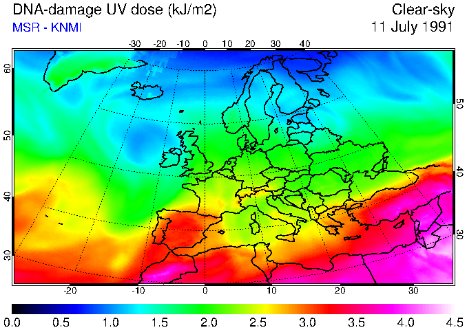 DNA-damage UV dose of 11 July 1991