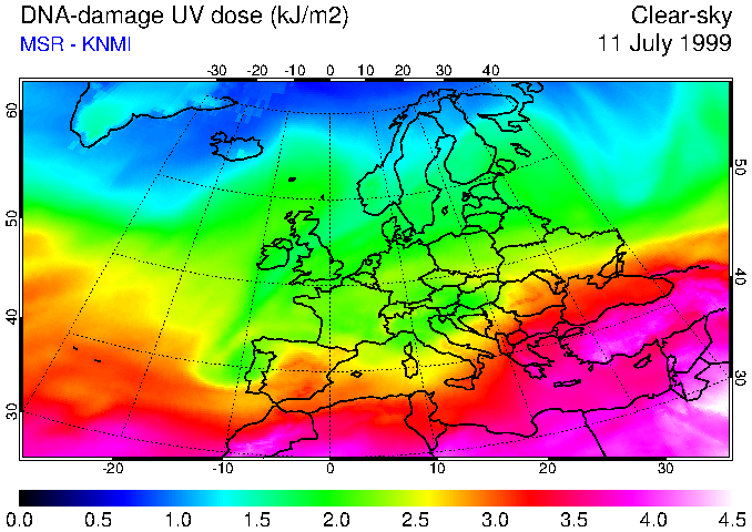 DNA-damage UV dose of 11 July 1999
