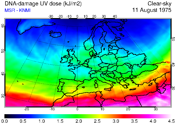 DNA-damage UV dose of 11 August 1975