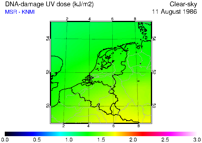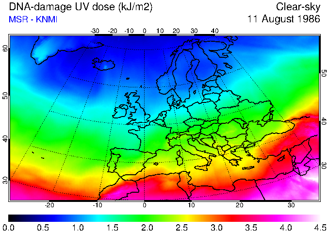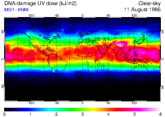 DNA-damage UV dose of 11 August 1986