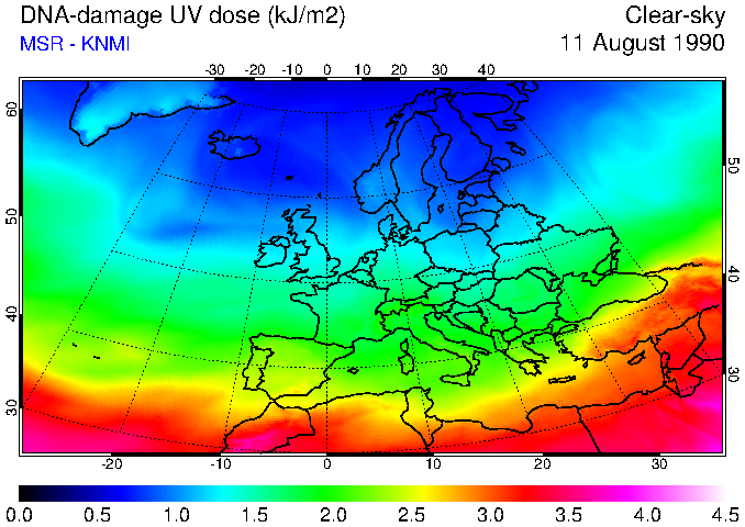 DNA-damage UV dose of 11 August 1990