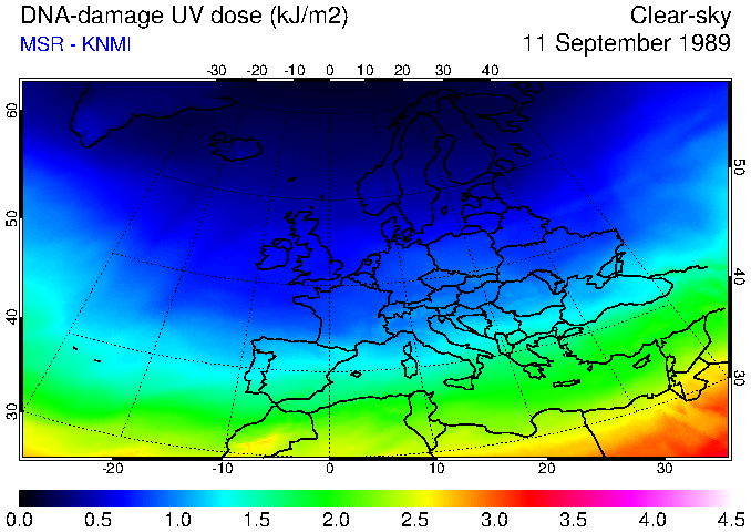 DNA-damage UV dose of 11 September 1989