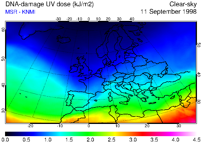 DNA-damage UV dose of 11 September 1998