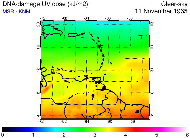 Clear-sky UV index:   erythemal