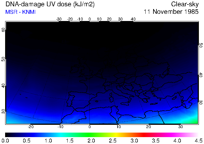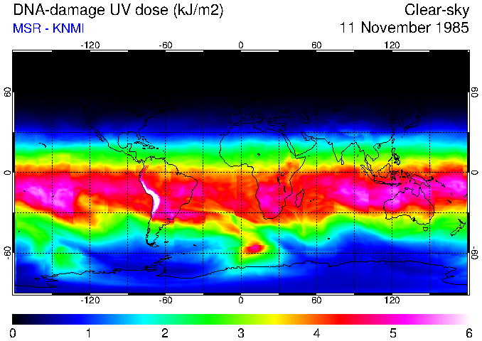 DNA-damage UV dose of 11 November 1985