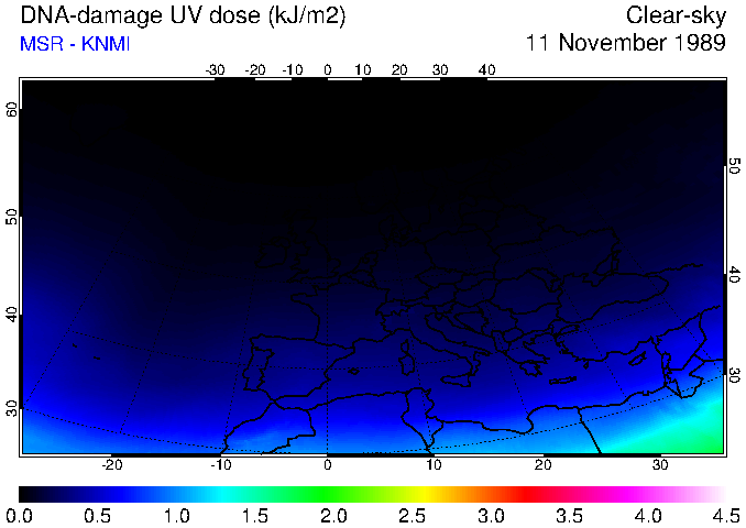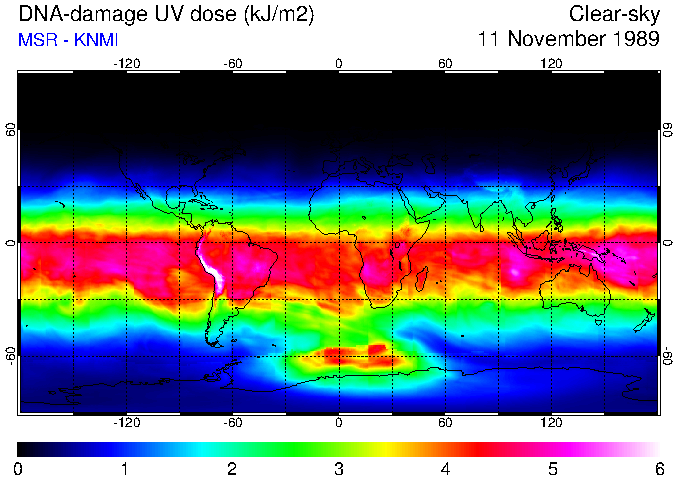 DNA-damage UV dose of 11 November 1989