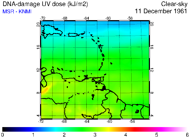 Clear-sky UV index:   erythemal