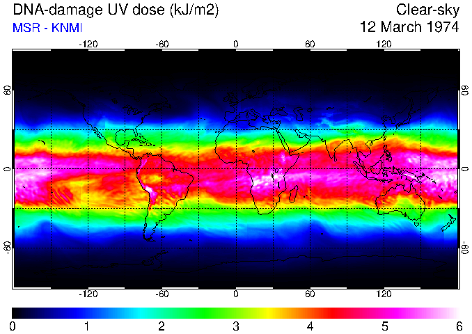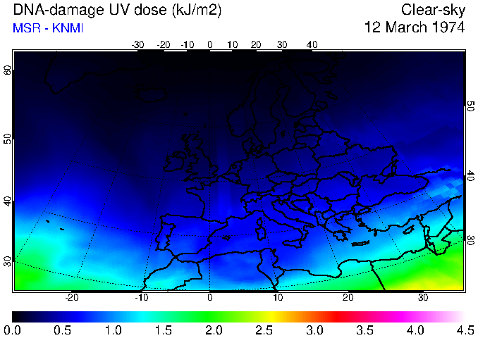 DNA-damage UV dose of 12 March 1974