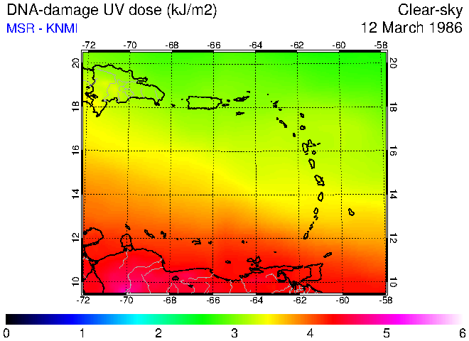 Clear-sky UV index:   erythemal
