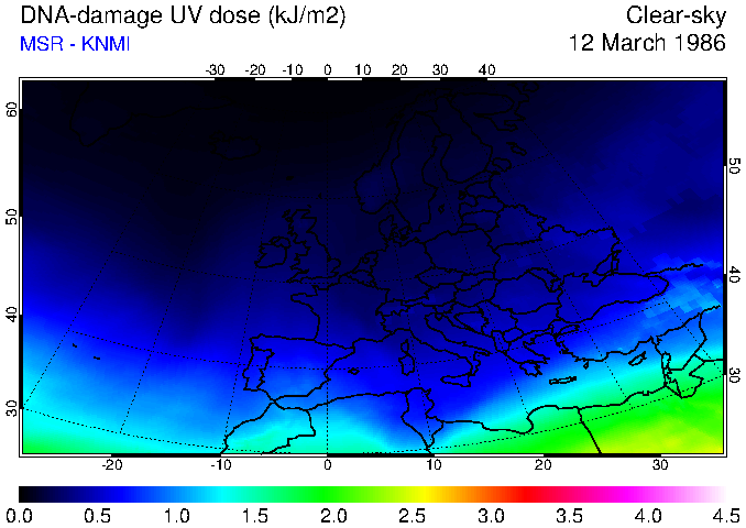 DNA-damage UV dose of 12 March 1986
